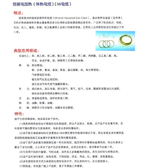 - 產(chǎn)品名稱:鎧裝電加熱電纜